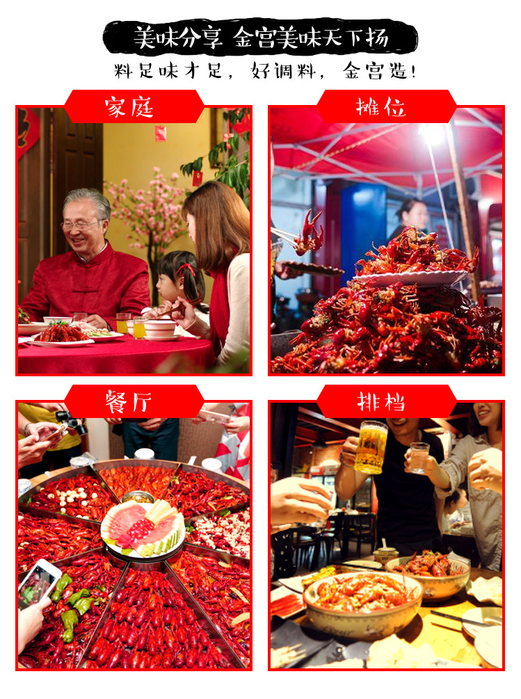 產(chǎn)品簡介:本調(diào)料是金宮川派公司川菜研發(fā)團(tuán)隊(duì)收集川、渝江河上漁翁炒蝦的方法,精選新鮮大蒜、洋蔥、香辛料等煽炒爆香精心制作而成,烹調(diào)出來的小龍蝦外殼紅亮、蝦肉細(xì)嫩、辣中有麻,回味有日。