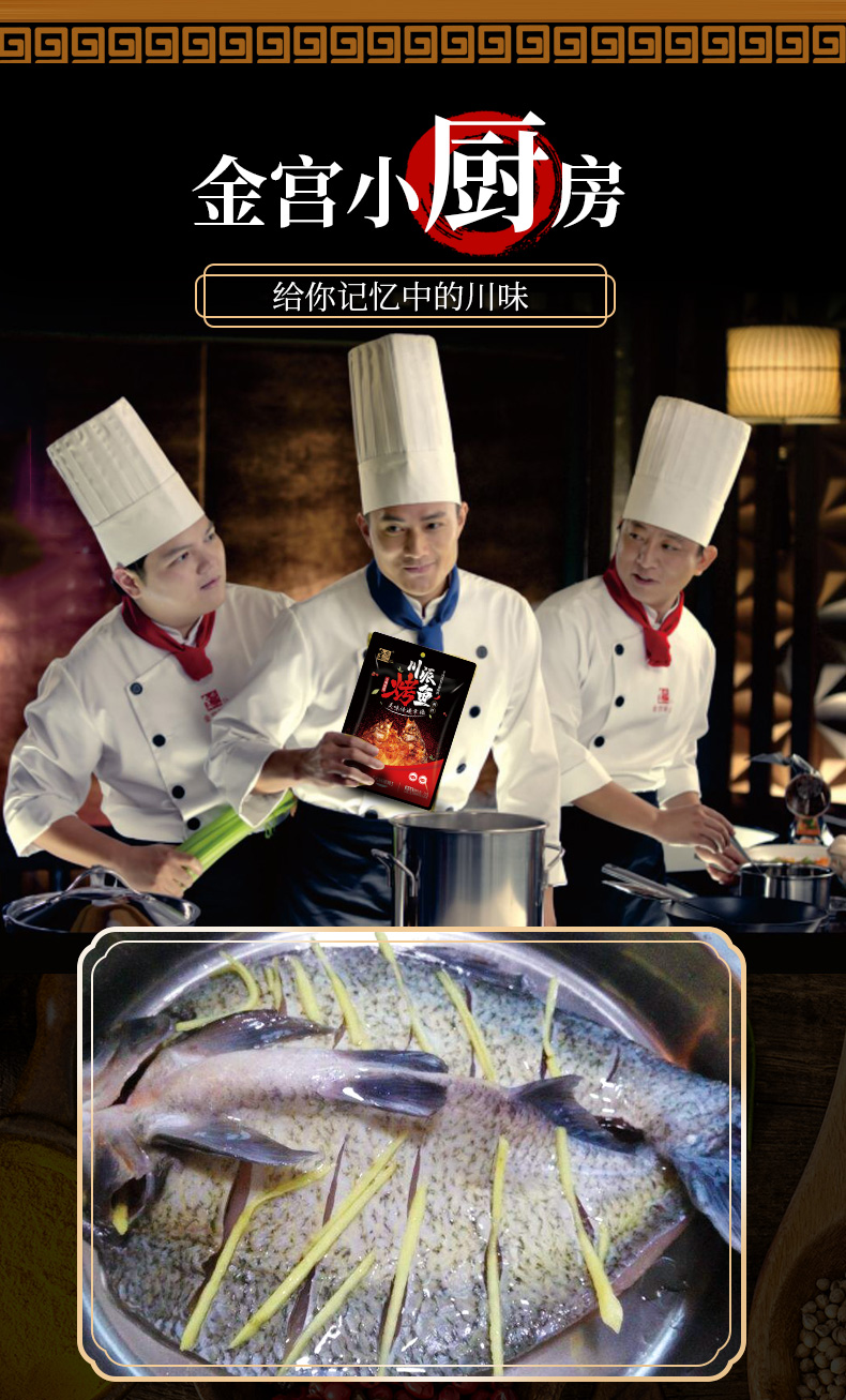 產(chǎn)品簡(jiǎn)介:本調(diào)料是金宮川派公司川菜研發(fā)團(tuán)隊(duì)收集川、渝江河上漁翁烤魚(yú)的方法,應(yīng)用腌、烤/煎、燉三種烹飪技術(shù),將傳統(tǒng)川菜和火鍋的做法充分融合,精心編炒爆香而成,成菜鮮嫩焦香,回味無(wú)窮。
