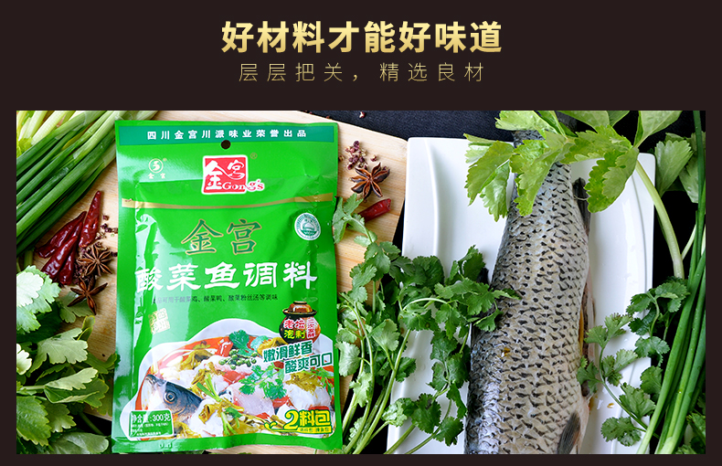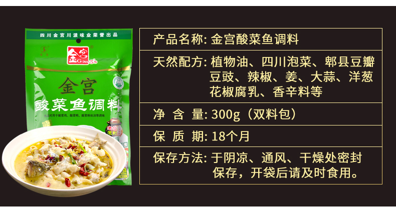 產(chǎn)品簡介:本產(chǎn)品憂選傳統(tǒng)老壇炮制的酸菜和小米辣,由金宮資深調(diào)味師精心調(diào)配,經(jīng)小火慢炒,讓酸、辣充分融合面獨樹一幟。食客在烹制過程中無需再次炒作,加適量清水下料煮魚至熟即成。
