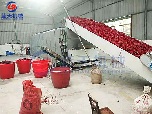 湖南網(wǎng)帶辣椒烘干機(jī)烘干現(xiàn)場(chǎng):可烘干量大