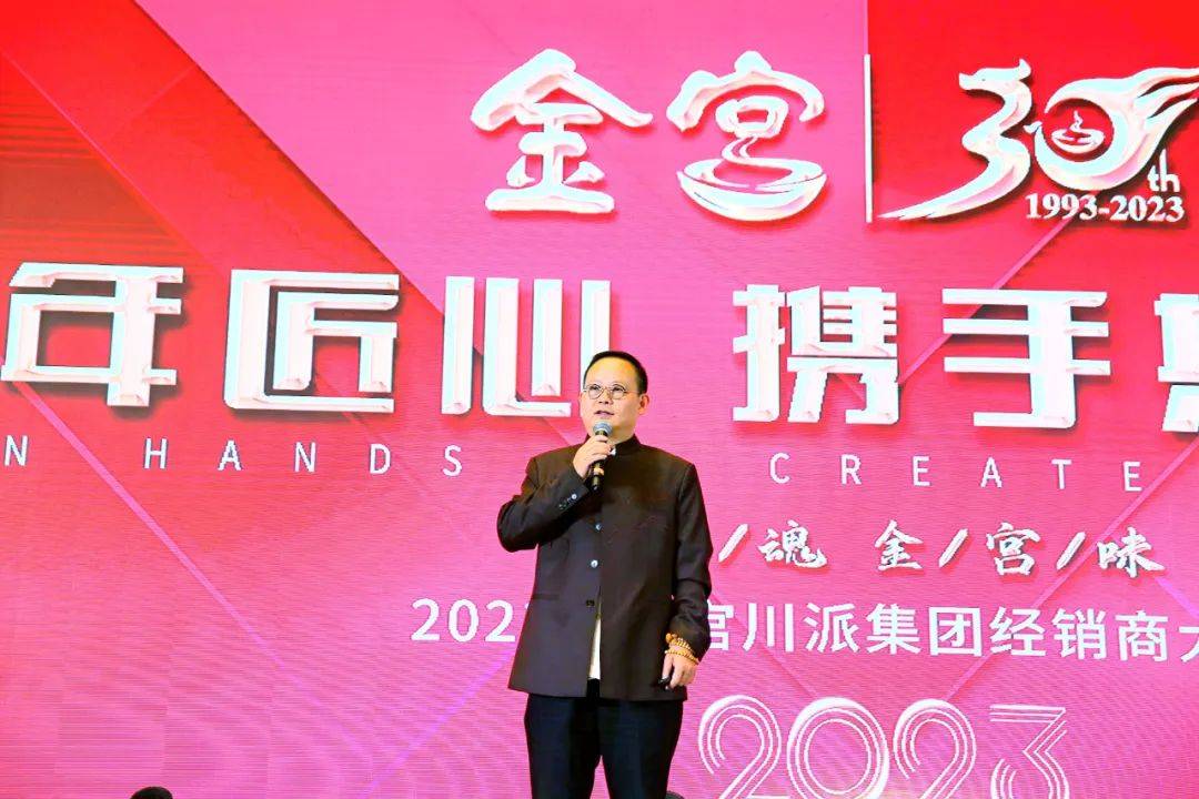 30年匠心,攜手共創(chuàng)輝煌。2023年4月10日金宮川派集團(tuán)“三十年匠心,攜手共創(chuàng)輝煌”三十年慶典暨2023金宮川派集團(tuán)經(jīng)銷商大會在溫江皇冠假日酒店盛大舉行。金宮川派集團(tuán)董事長龔永澤先生與來自全國各地區(qū)的數(shù)百位金宮經(jīng)銷商伙伴齊聚一堂,互話家常,共享珍貴瞬間。