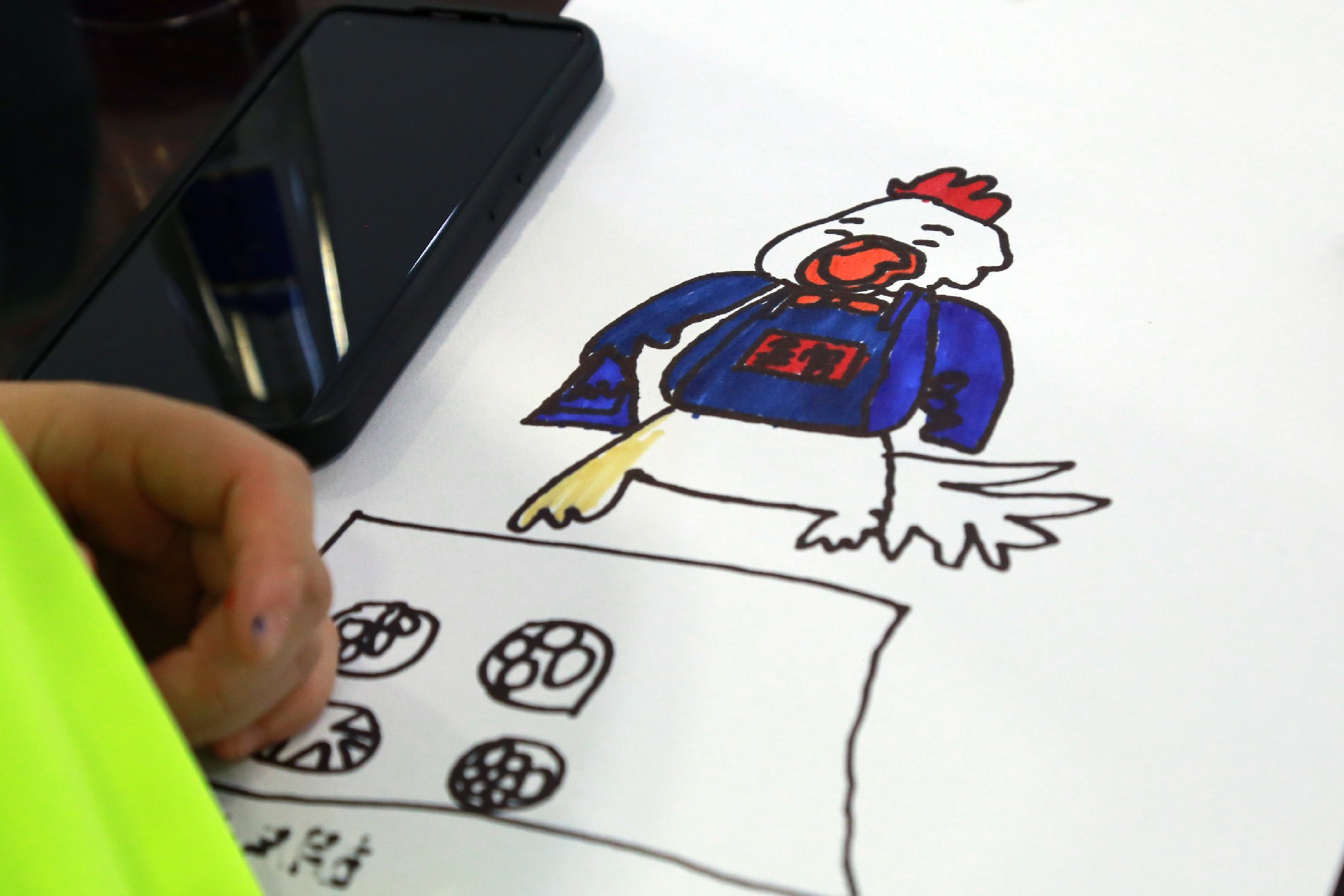 同學(xué)們參觀了雞精生產(chǎn)流程,了解調(diào)味品的誕生奧秘,近距離感受原材料的奇妙世界。在趣味互動中,他們動手繪出“心中的金宮”,用繽紛畫筆勾勒夢想模樣。這份純真與創(chuàng)造力,溫暖了在場每一位金宮人。