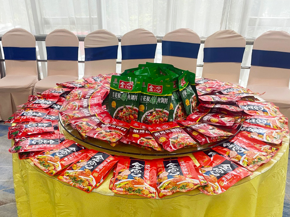 活動(dòng)現(xiàn)場設(shè)有產(chǎn)品展示與推介專區(qū),金宮熱銷產(chǎn)品“特級(jí)雞精454克”強(qiáng)勢登場,香味濃郁、提鮮持久,深受在場客戶青睞。同時(shí),金宮還帶來了多款新品,包括“新香辣系列調(diào)味料”“濃縮牛油火鍋底料”“青花椒嫩魚底料”等,讓客戶在試吃中充分感受金宮在產(chǎn)品創(chuàng)新方面的持續(xù)突破與品質(zhì)堅(jiān)守。