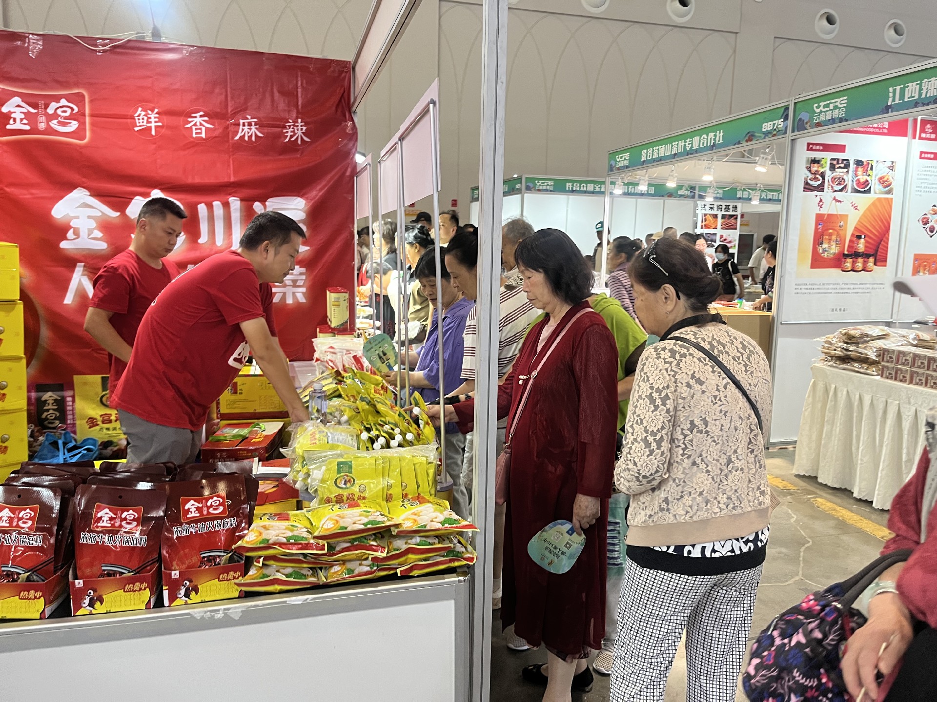 展會現場,金宮展臺吸引了不少來自餐飲、經銷、商貿等領域的客商駐足品鑒與洽談。香氣撲鼻的香辣系列產品成為亮點,吸引了大量云南餐飲客戶試味、咨詢。許多到訪客戶對金宮產品的穩(wěn)定品質、豐富口味表示認可,并現場留下合作意向。