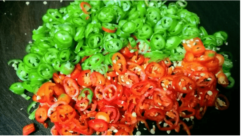 淋上紅油,并放入準(zhǔn)備好的青紅椒圈、大蔥圈、小檸檬片、小番茄片等;