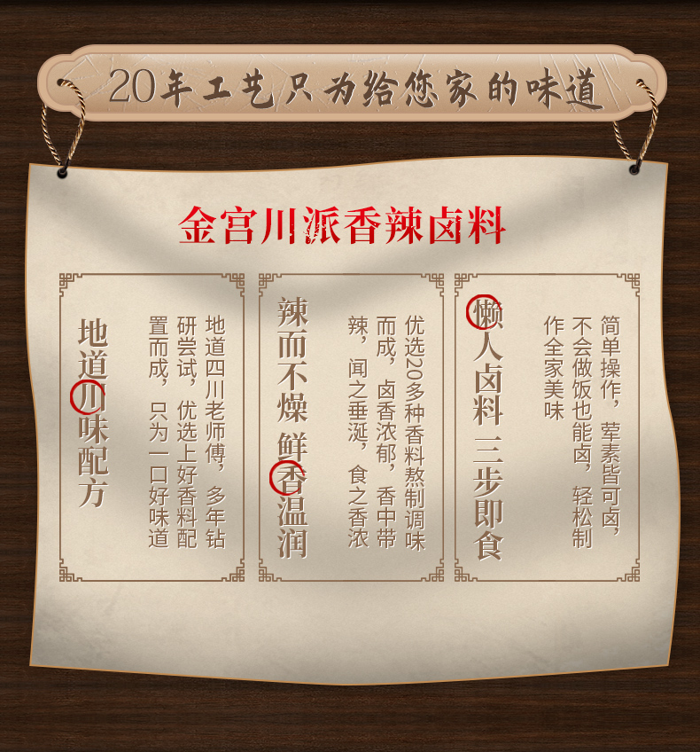 產(chǎn)品特點:鹵香濃郁香中帶辣