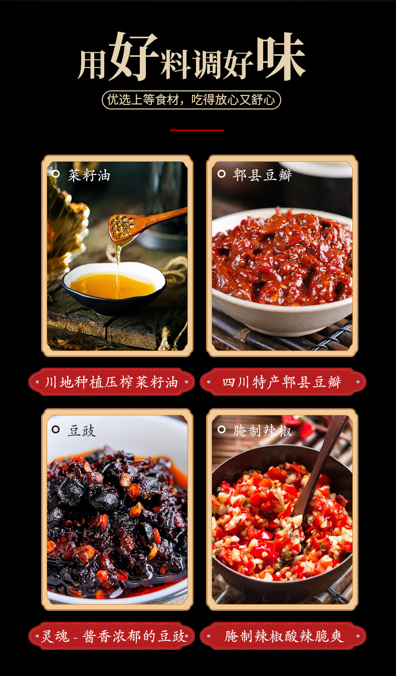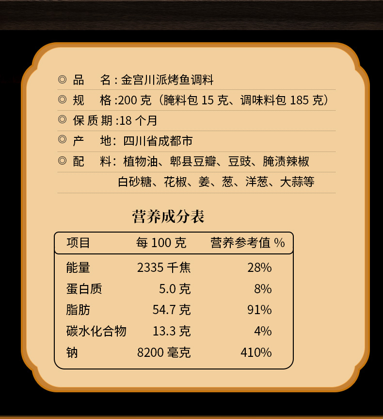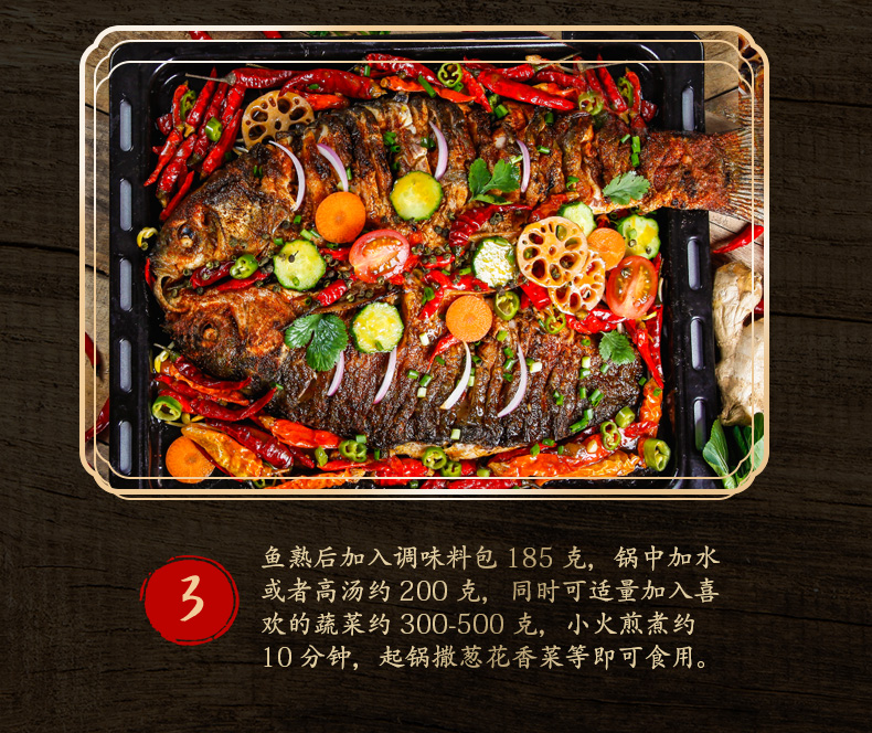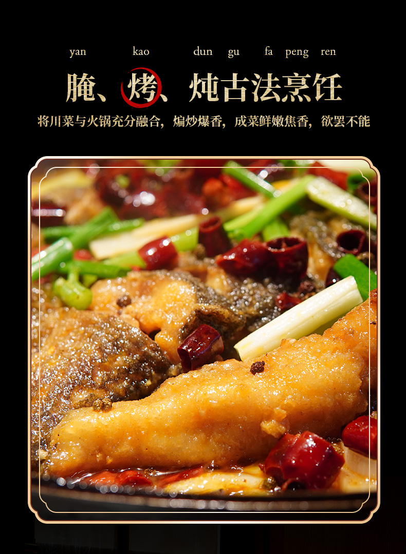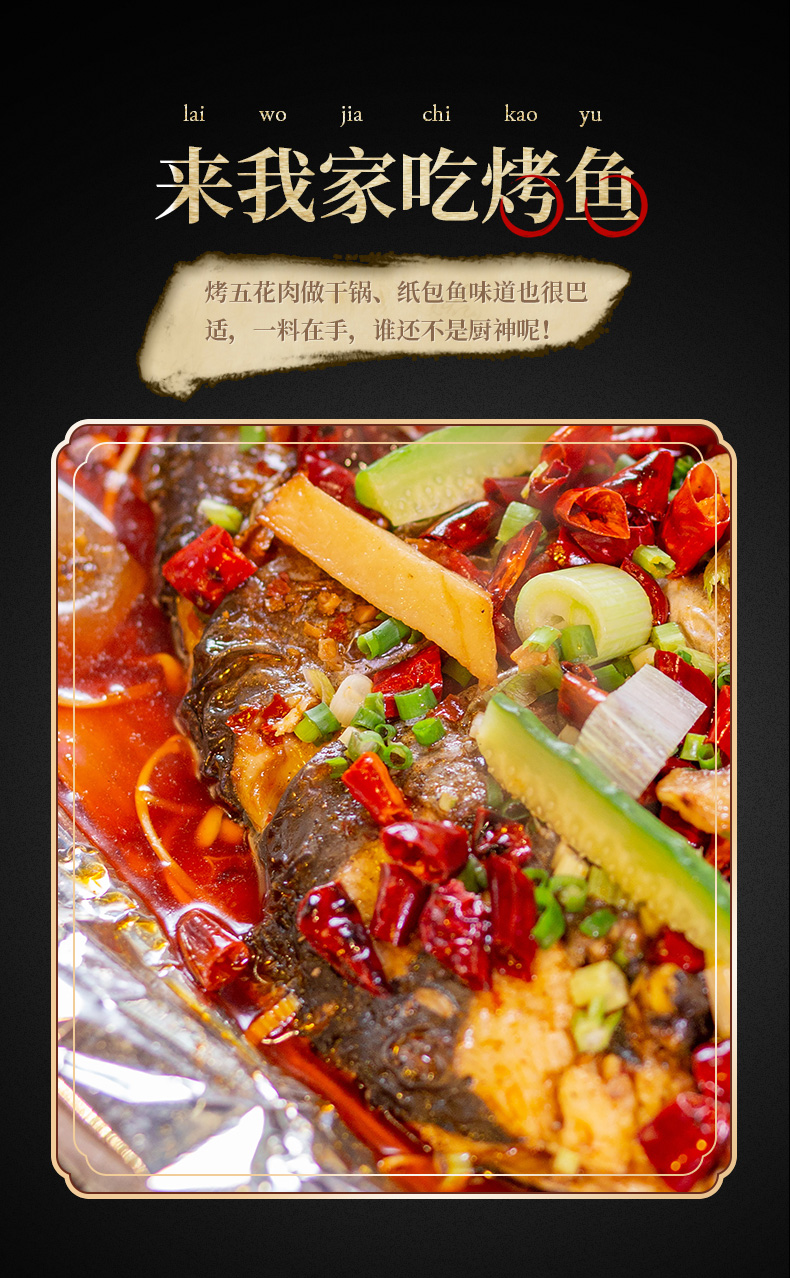 產(chǎn)品簡(jiǎn)介:本調(diào)料是金宮川派公司川菜研發(fā)團(tuán)隊(duì)收集川、渝江河上漁翁烤魚(yú)的方法,應(yīng)用腌、烤/煎、燉三種烹飪技術(shù),將傳統(tǒng)川菜和火鍋的做法充分融合,精心編炒爆香而成,成菜鮮嫩焦香,回味無(wú)窮。
