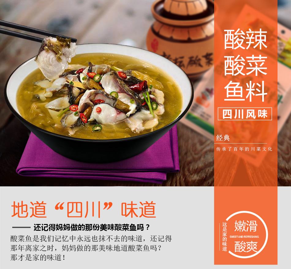 產(chǎn)品簡(jiǎn)介:本品為金言川派味業(yè)川菜研發(fā)團(tuán)隊(duì)收集川渝漁笛煮魚技巧。精心調(diào)配而成。晴選四川泡菜、優(yōu)質(zhì)花駔等食材。讓魚肉酸香可口,回味無(wú)窮。